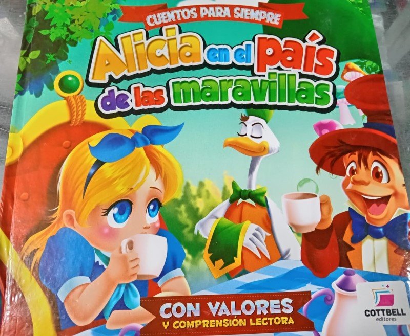 Cuento de alicia en el país de las maravillas de tapa dura con hojas de cartón plastificado, contiene compresión lectora, es un excelente cuento para los más pequeños de casa donde aprenderán el valor de la creatividad.